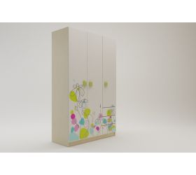 Шкаф 2-х створчатый с ящиками Эппл (Зеленый/Белый/корпус Клен)