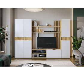 Гостиная Бери К2 дуб крафт золотой / белое дерево состоит из 8 модулей: